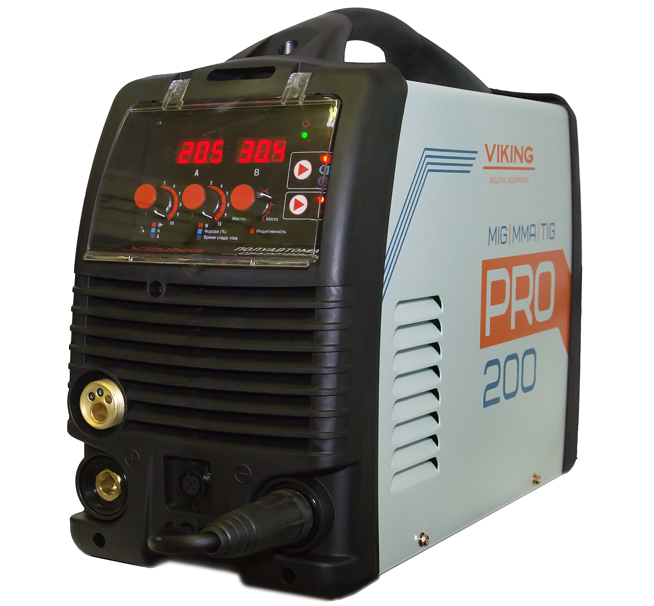 Профессиональный многофункциональный сварочный полуавтомат VIKING PRO 200 MIG-MAG-FLUX/MMA/TIG DC-LIFT предназначен для использования в широком диапазоне сварочных видов работ. Этому аппарату доступны: полуавтоматическая сварка сварочной проволокой в среде защитных газов или флюсовой проволокой без газа, ручная дуговая сварка ММА плавящимися электродами и аргонодуговая сварка неплавящимся вольфрамовым электродом. Данный аппарат создан на современной элементной базе с использованием IGBT транзисторов последнего поколения, которая обеспечивает лучший контроль за параметрами сварочного тока, обеспечивает высокое качество и стабильную работу. Аппарат может использоваться для сварки материалов конструкционных сталей, нержавеющих сталей, алюминия, магния и их сплавов, и других цветных металлов, и сплавов. Наличие использования, в полуавтоматическом процессе сварки, функций капельного и струйного переноса, устойчивого возбуждение дуги, плавной скорости подачи проволоки обеспечивает высокое и гарантированное качество сварочного шва.